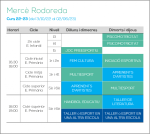 Patronat Municipal de Serveis d'Atenció a les Persones de Martorell > Ensenyament > Horari d’activitats extraescolars – Escola Mercè Rodoreda >